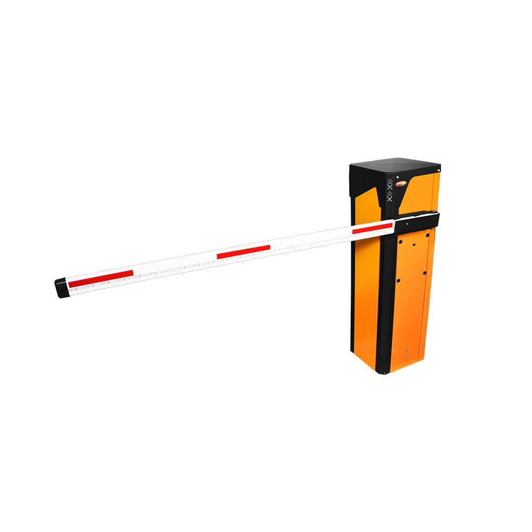 Cancela K10 para controle de acesso de veículos, ideal para locais de alto fluxo, como grandes estacionamentos, condomínios, shoppings, universidades e praças de pedágios, por exemplo.